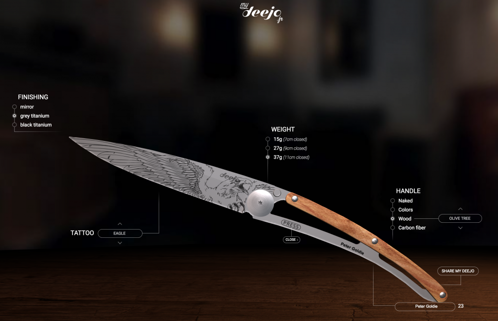 My favorite probably won’t be your favorite, because the Deejo knives are completely customizable. You choose the size, the metal finish, the handle material and the laser-etched design (including custom text) and for about $50, it arrives at your doorstep, from France, 2 days later. I found this knife because I was looking for something super light to take on the 50-miler hikes, but the design is just pure joy. www.deejo.fr